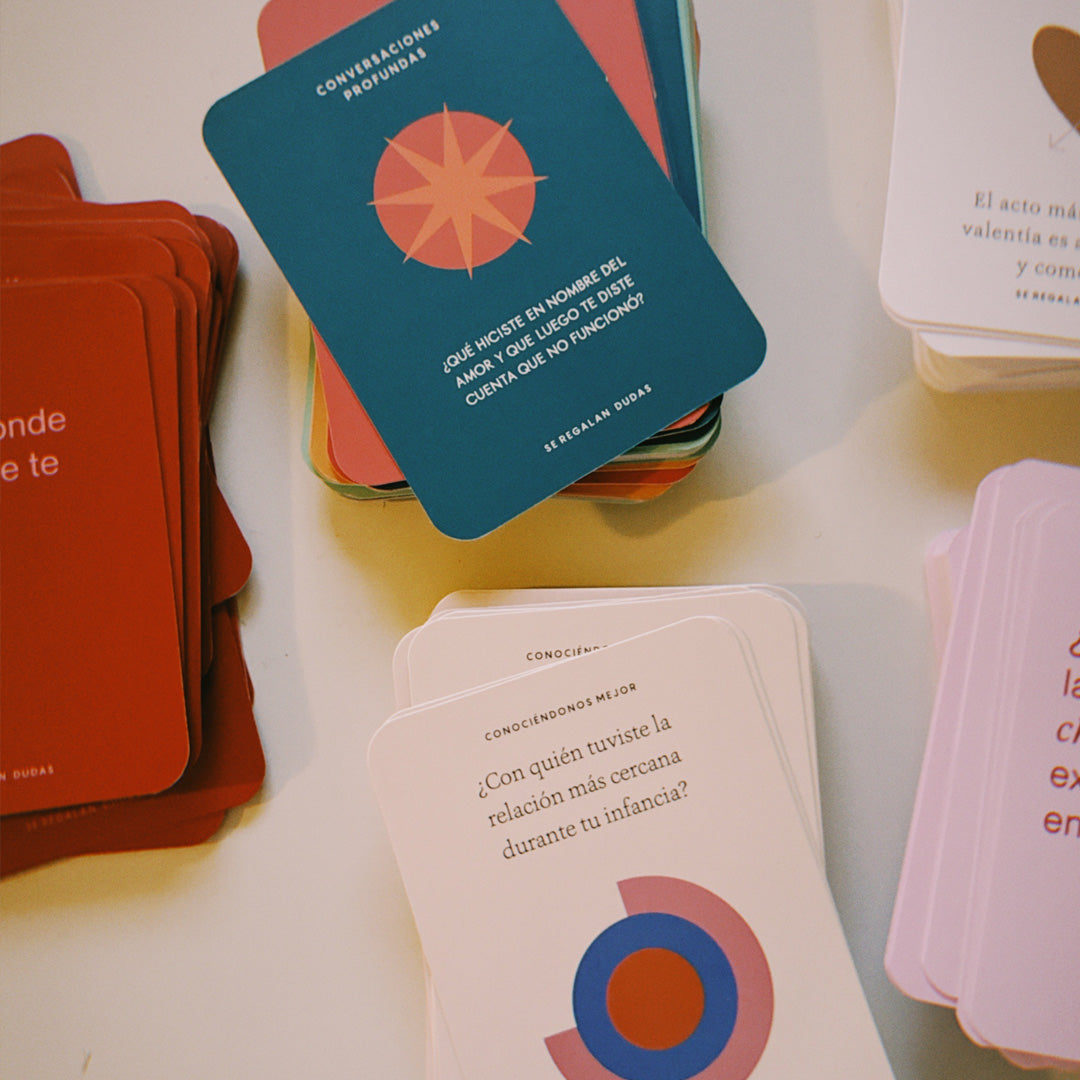 Nuestros juegos de cartas con preguntas están diseñados para abrir conversaciones profundas y crear conexiones reales.